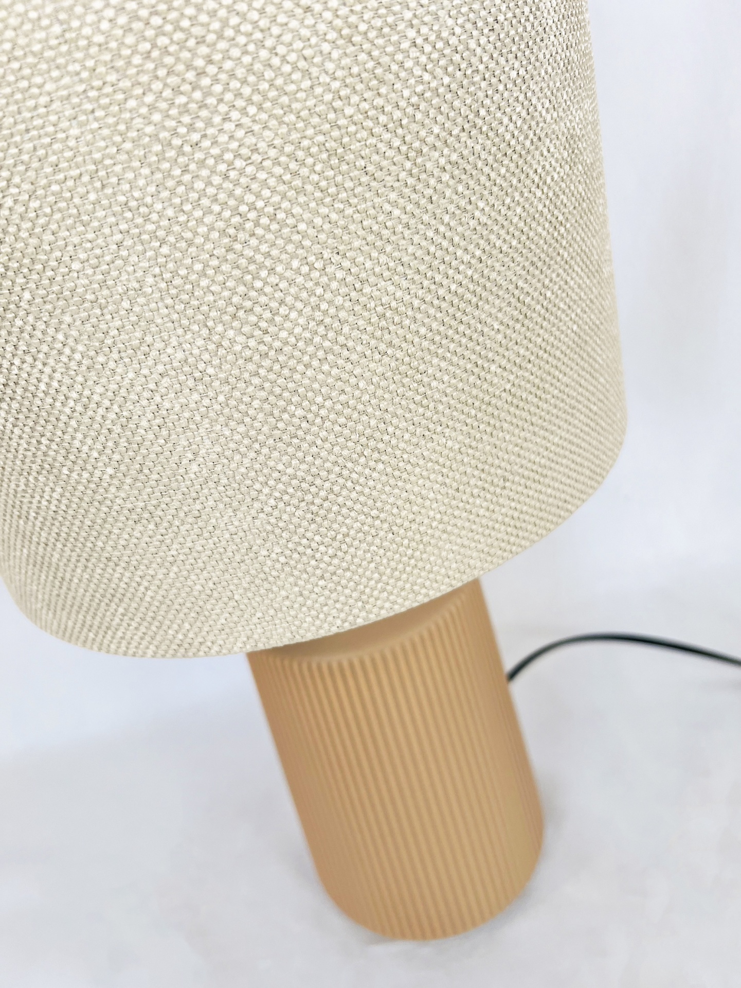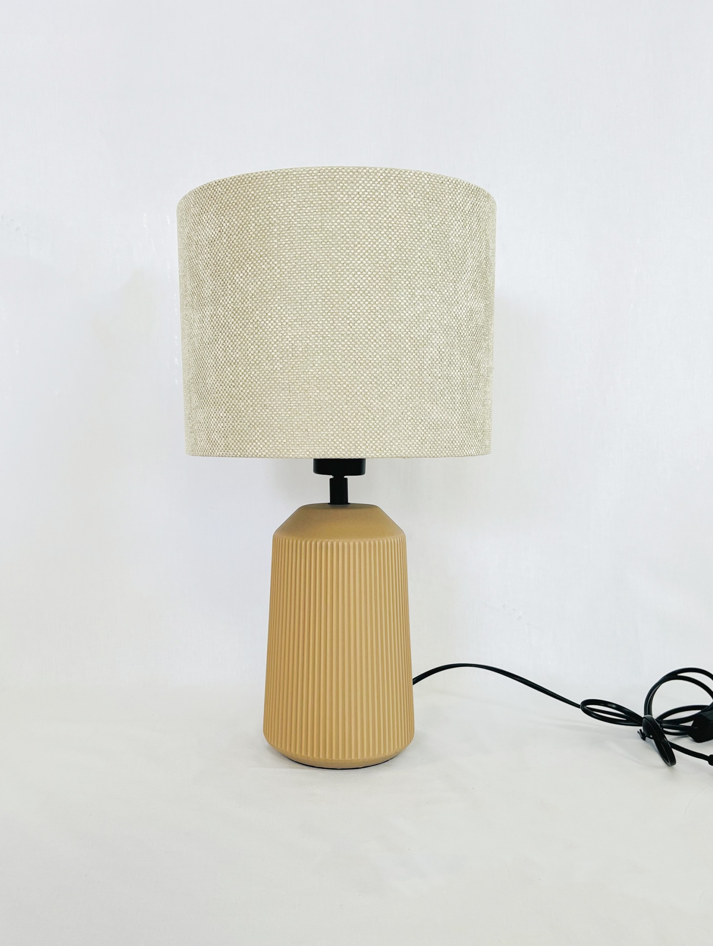 Candeeiro em cerâmica com abat-Jour redondo 25 cm largura e 18cm de altura em tecido Fresno, fabricado em Portugal.