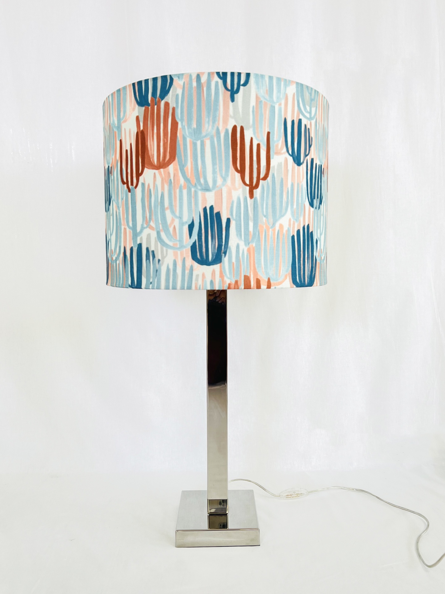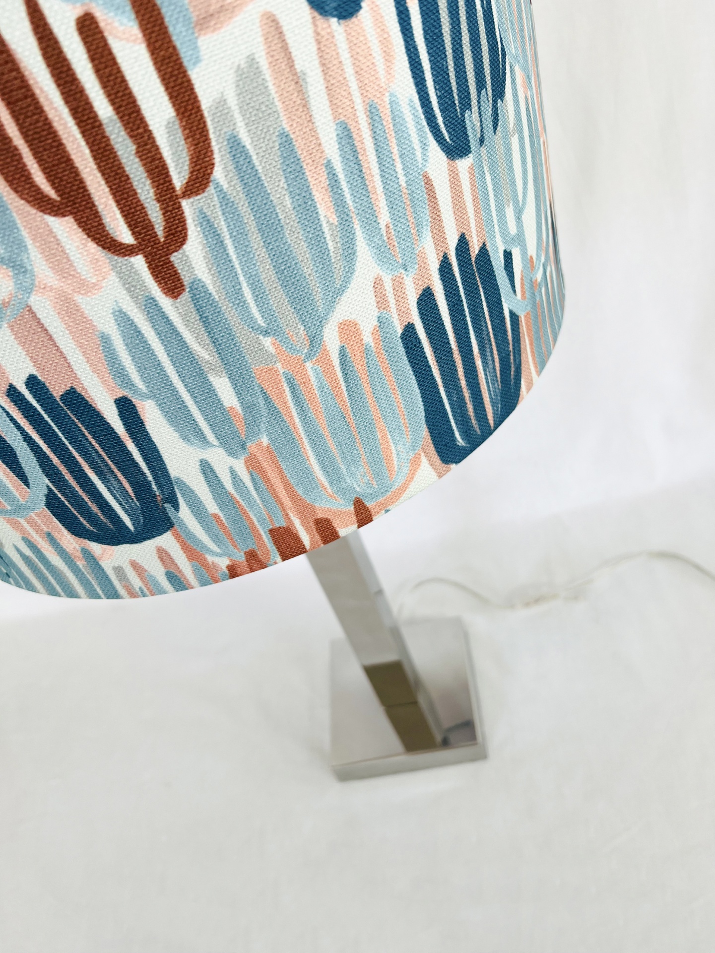 Candeeiro em inox com abat-Jour redondo 40 cm largura e 30cm de altura em tecido, fabricado em Portugal.